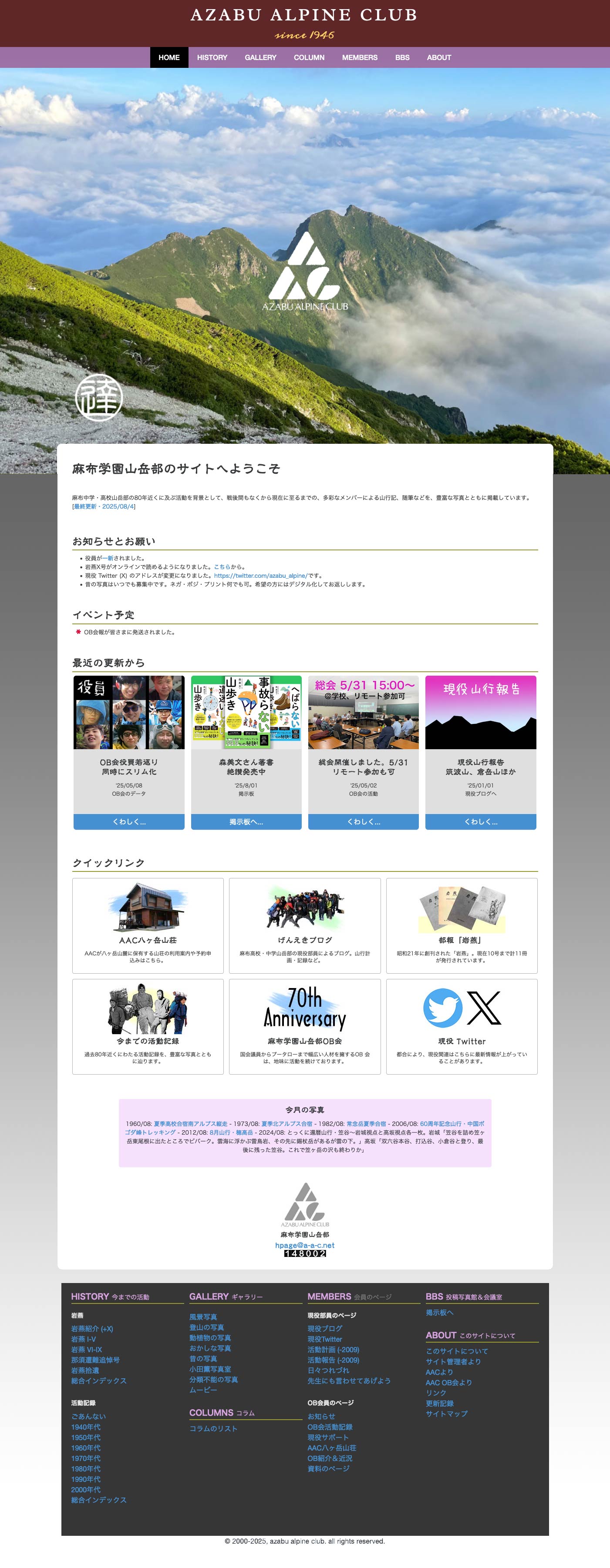 ホーム || これまでの活動 || ギャラリー || コラム || 山岳部員・OB会員のページ || 掲示板 || このサイトについて |